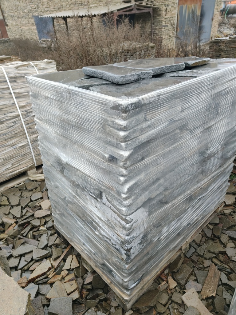 Плитняк песчаник синий галтованный для облицовки цоколя, отмостки 20-25 мм
