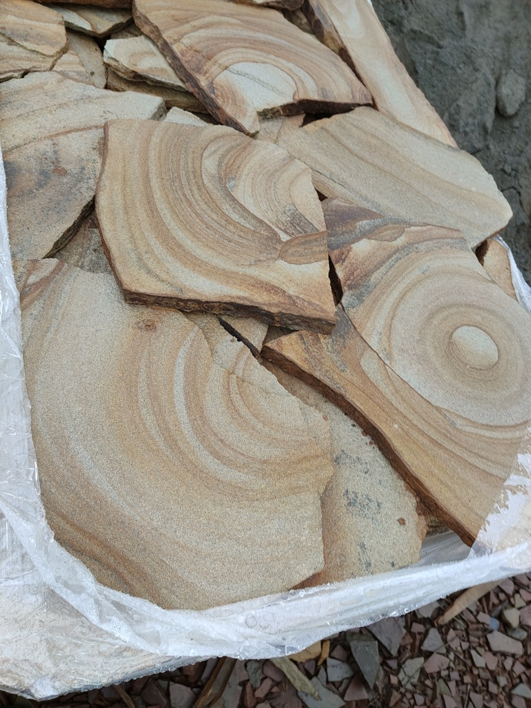 Песчаник жёлтый с разводами для мощения дорожек 40-45 мм